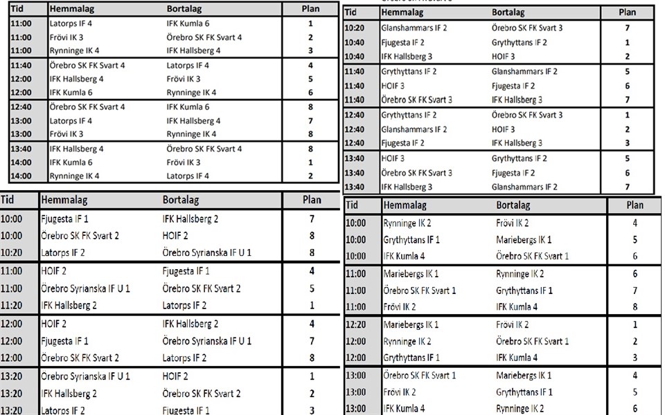 Hej, bifogat ser ni Spelschemat för söndagens poolspel. Vi ställer upp med fyra st lag. Poolspelet startar 10:00 och sista matchen spelas 14:00 Lagindelning kommer ut senare i veckan.