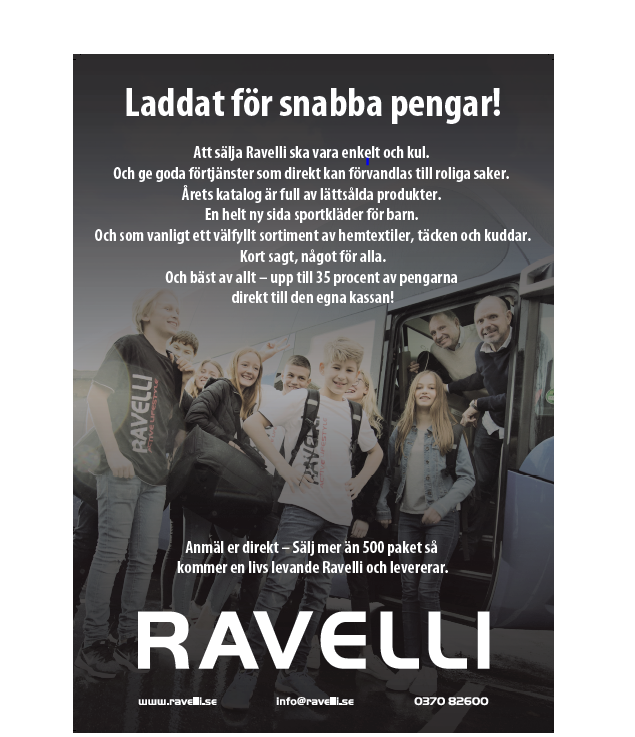 Ravelli kommer finnas på plats, i samband med ÖSK dagen, lördag den 18 Maj klockan 10.00-15.00. Utmana Ravelli i mästarnas mästare "nattduellen"! Dessutom får ni chansen att känna och klämma på Ravelli sortimentet. Ni kan även starta upp en säljomgång och tjäna pengar direkt när ni träffar Ravelli. Kataloger och säljarbrev delas ut i samband med eventet. Och ni är igång på en gång och kan tjäna pengar. För mer information, klicka HÄR Välkomna till Ravelli på lördag den 18 maj.