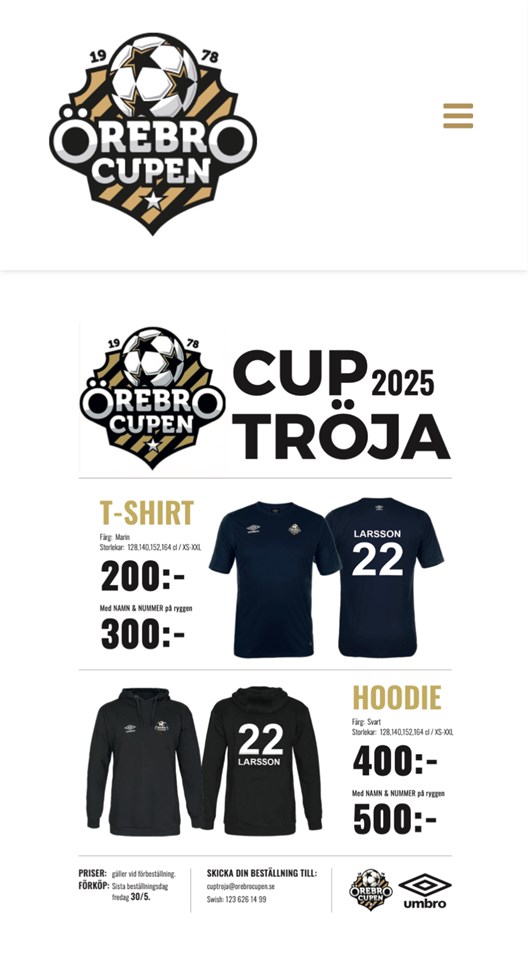 • Möjlighet att beställa cuptröja till Örebrocupen